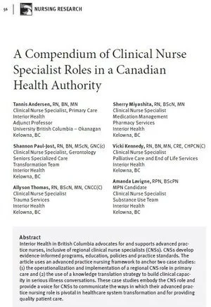CNSABC is proud to spotlight this article by an incredible team of Clinical Nurse Specialists, Interior Health, BC